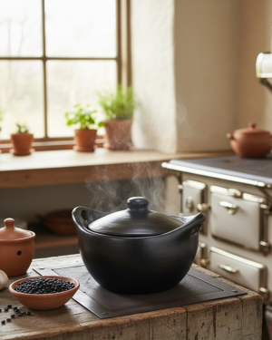 Olla Chamba 5 litros en barro negro en Colombia. Ideal para sopas y guisos, cocción lenta y saludable. Artesanal, resistente y sostenible.