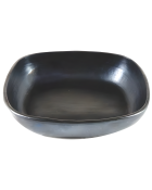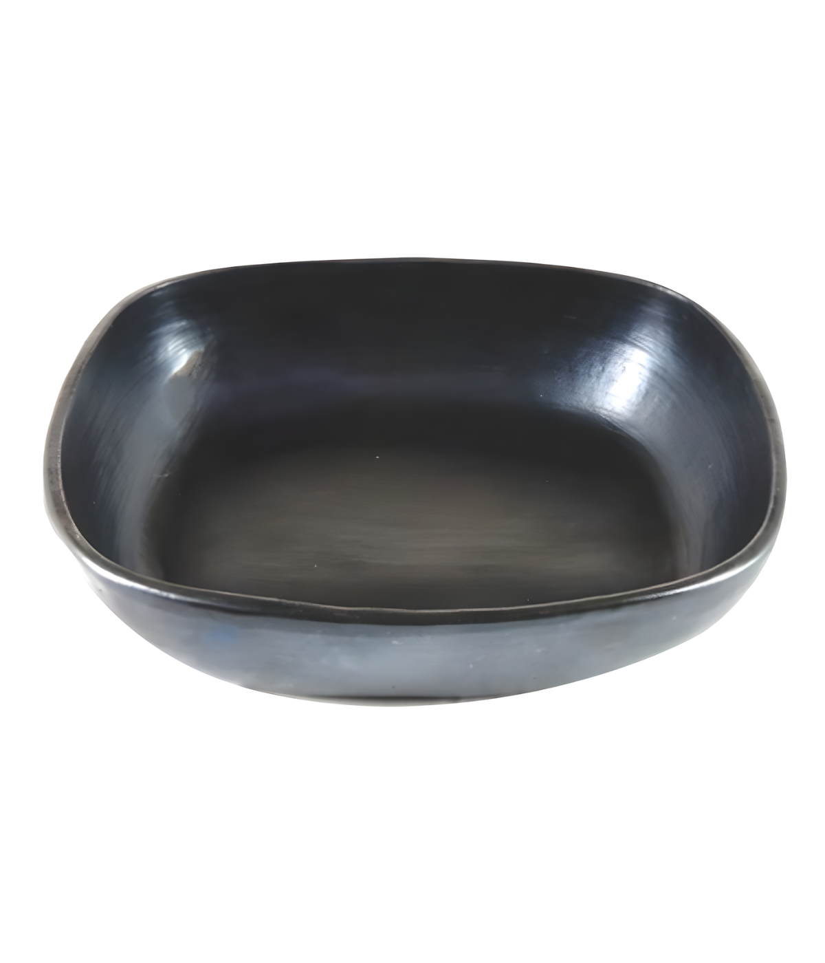 Bandeja cuadrada en chamba de barro negro hecha a mano en Colombia, ideal para servir y presentar alimentos. Diseño artesanal y duradero.