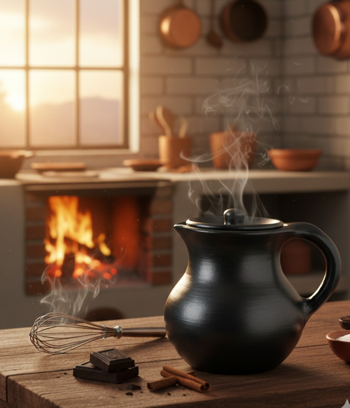 La Chocolatera en Chamba de 2,5 litros es un utensilio artesanal en barro refractario natural, ideal para preparar chocolate espeso, aromáticas y bebidas calientes. Hecha a mano, conserva el calor de forma uniforme, realza sabor y aroma. Producto sostenible con acabado en cera vegetal.