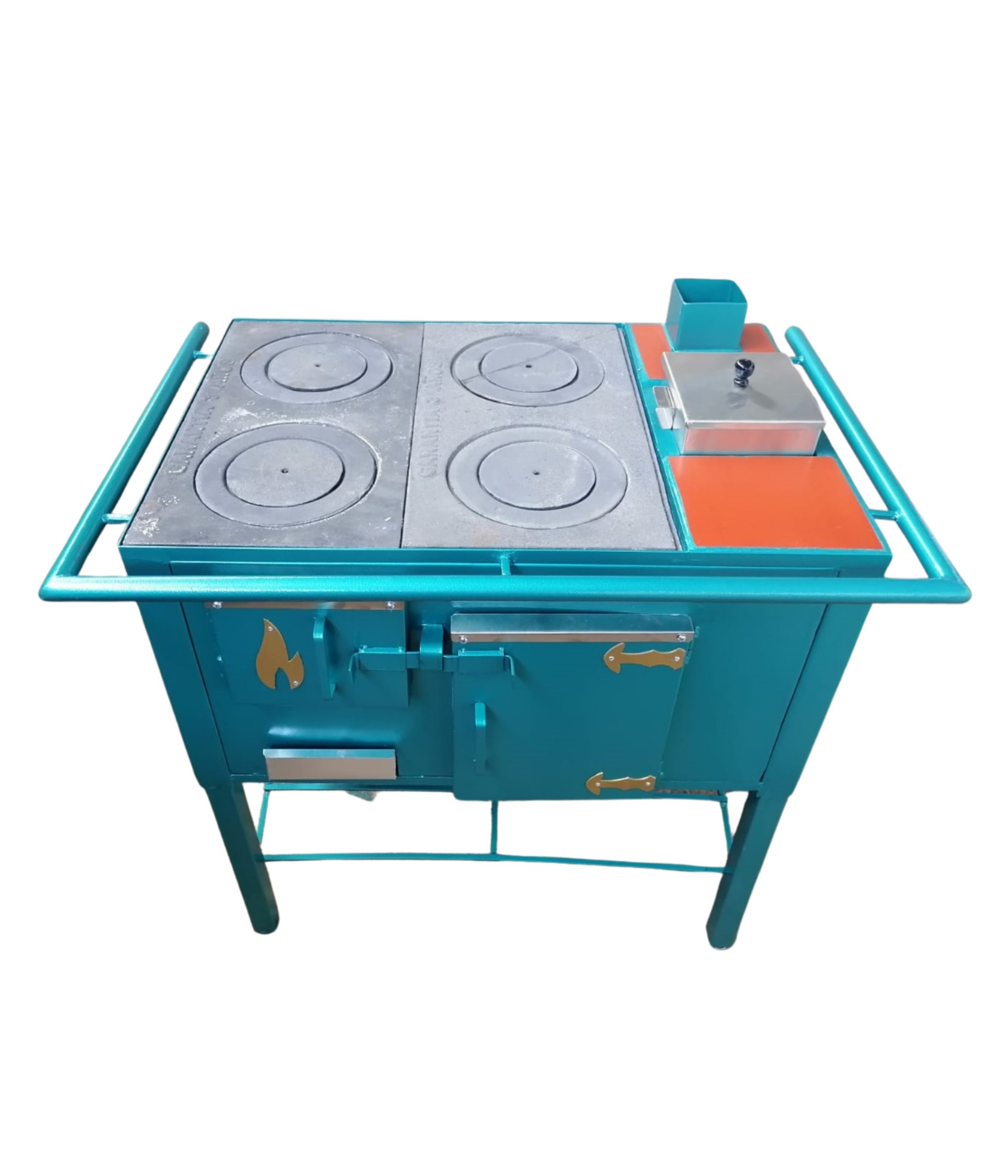 Estufa ahorradora de leña, compuesta por: 2 hornillas de leña con cámara de combustión, hasta 70% menos consumo de leña y 90% menos emisiones. Transportable, segura y fácil de instalar, ideal para el hogar rural. Disponible en acabados resistentes y duraderos.