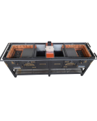 Estufa campestre HOBO: 4 hornillas de leña, horno integrado, parrilla asadora y calentador de agua en acero. Reduce 70% de leña y 90% emisiones contaminantes, ideal para fincas y cocinas rurales.