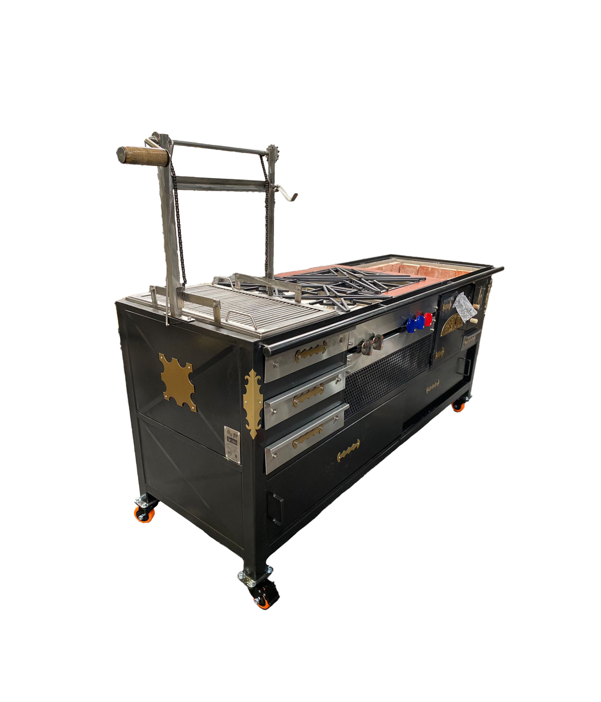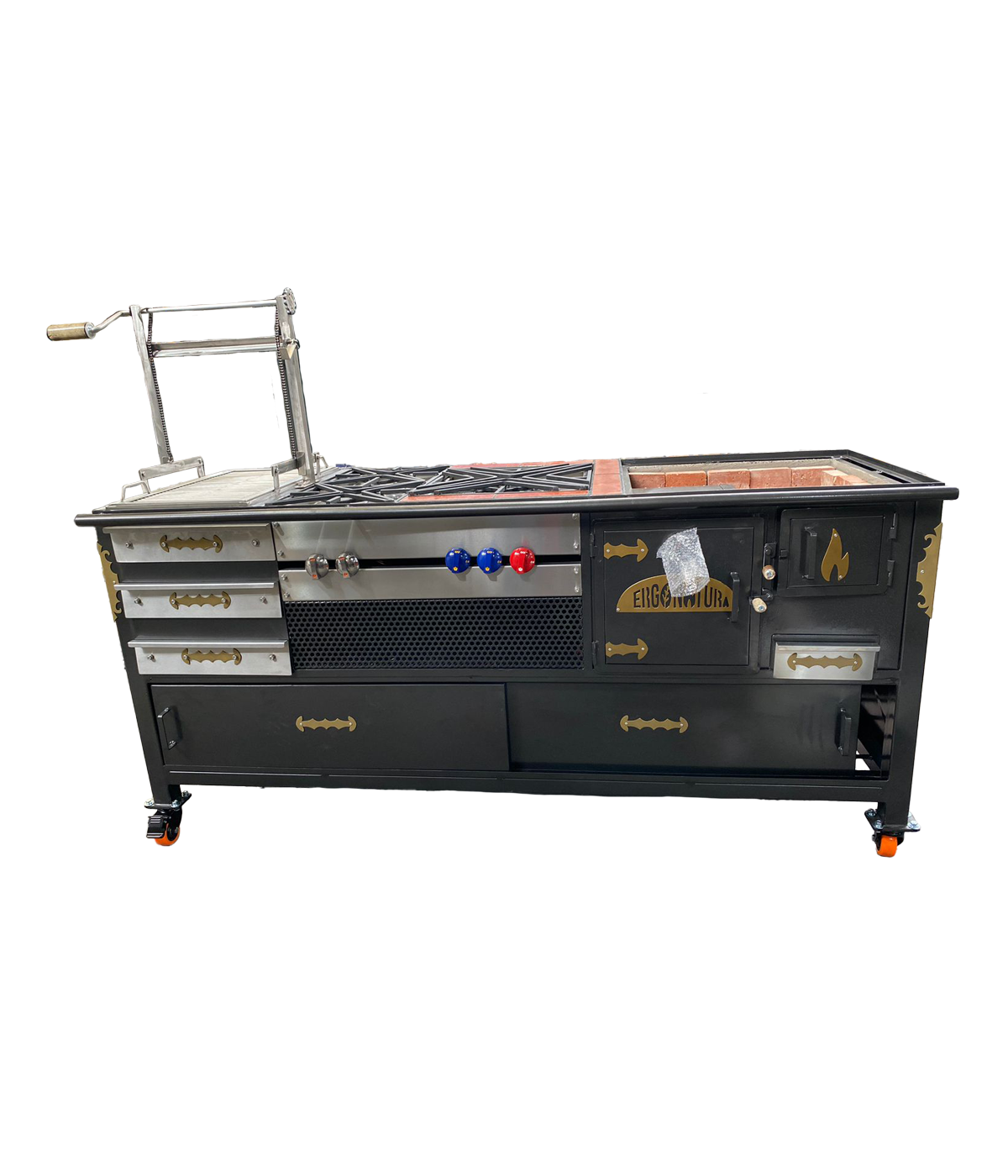 Estufa Sanjuanera modular: versatilidad total con módulos de gas, leña y parrilla BBQ. Ideal para negocios gastronómicos de gran capacidad.