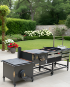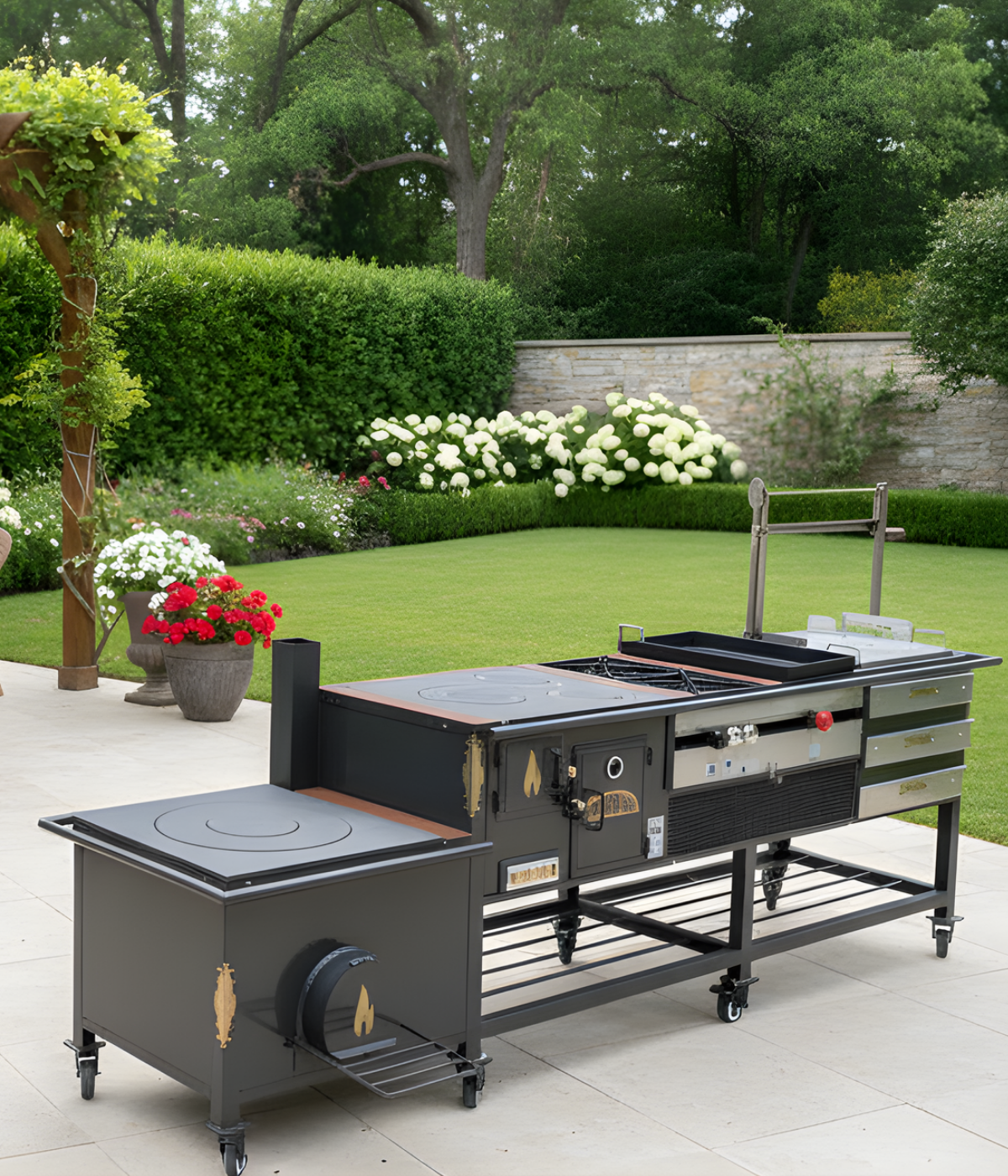 Estufa Sanjuanera modular: versatilidad total con módulos de gas, leña y parrilla BBQ. Ideal para negocios gastronómicos de gran capacidad.