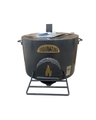Estufa campestre HOBO: 4 hornillas de leña, horno integrado, parrilla asadora y calentador de agua en acero. Reduce 70% de leña y 90% emisiones contaminantes, ideal para fincas y cocinas rurales.