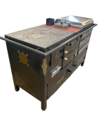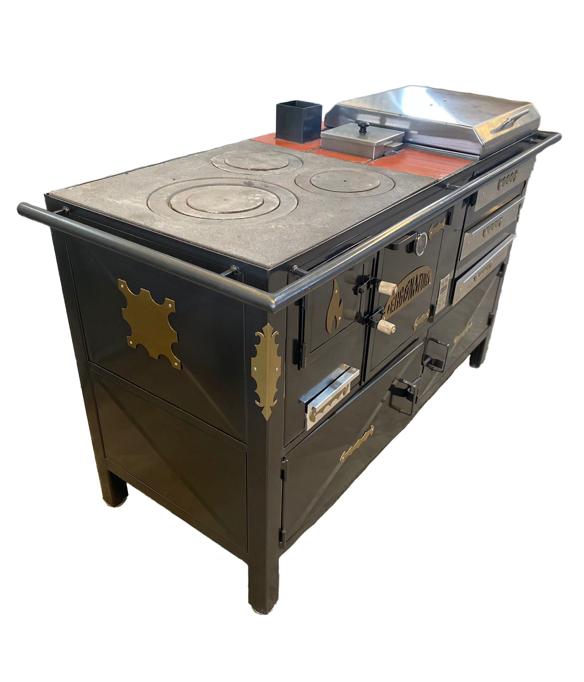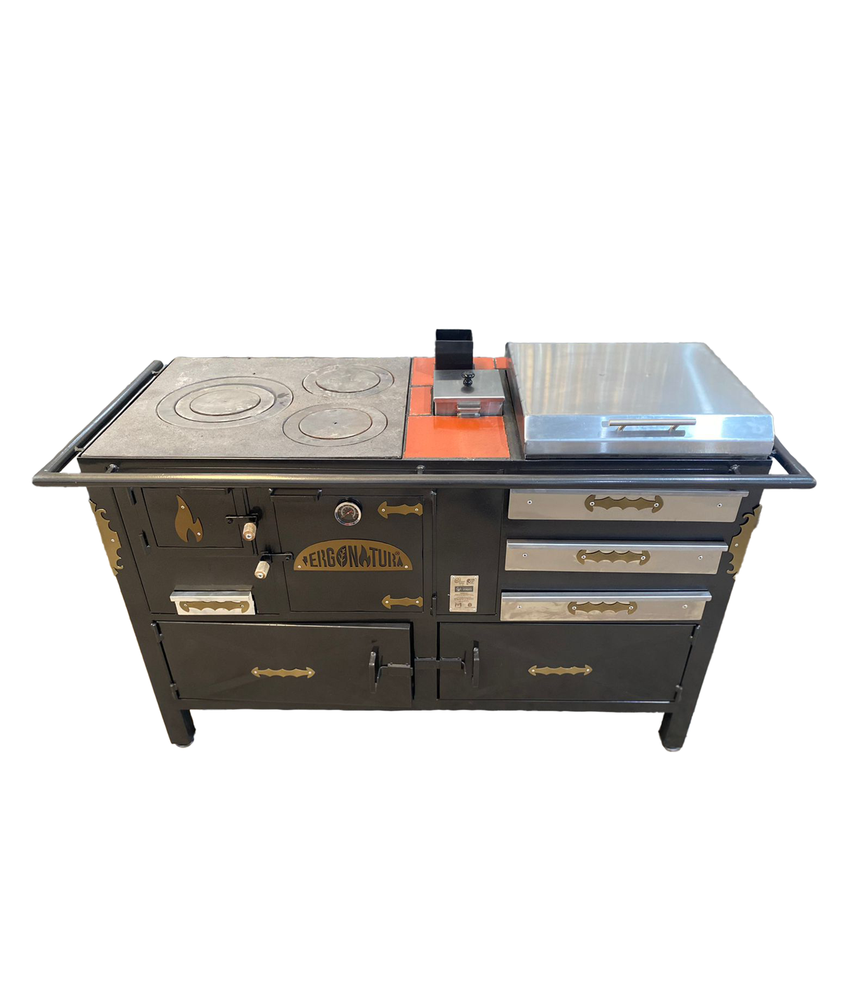 Estufa ecoeficiente Palermo Mixta con 4 hornillas a leña, horno, parrilla y calentador de agua. Reduce 70% de leña y 90% emisiones. Ideal para casas campestres.